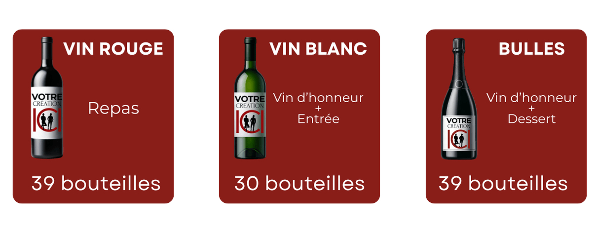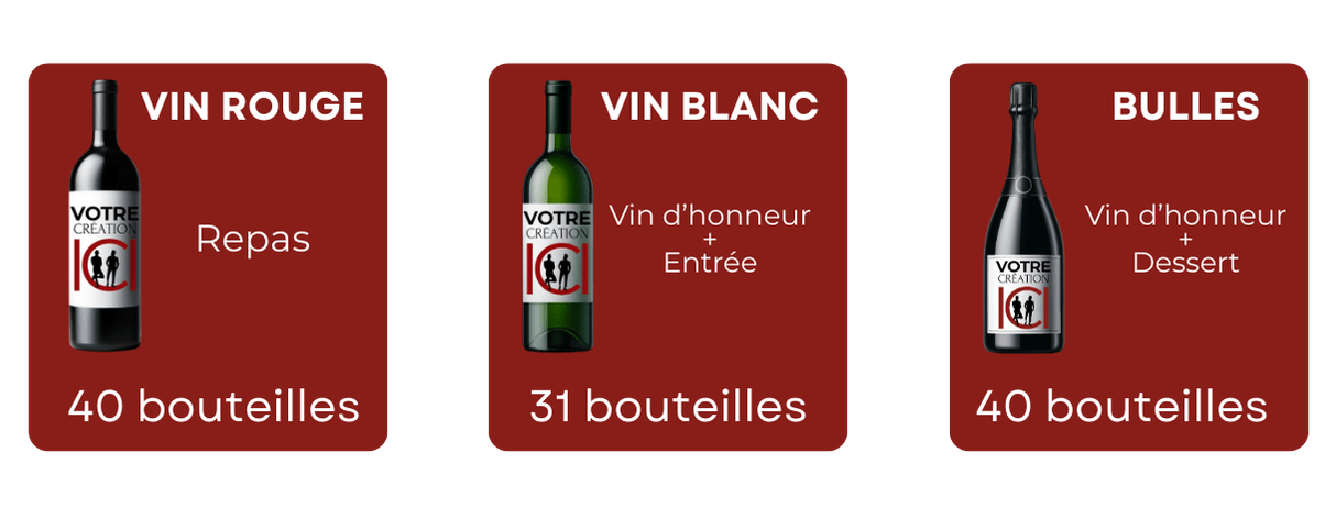 Notre concept a été pensé pour répondre aux attentes des futurs mariés modernes : liberté de choix, qualité irréprochable du vin et personnalisation complète des bouteilles directement en ligne, en toute simplicité.