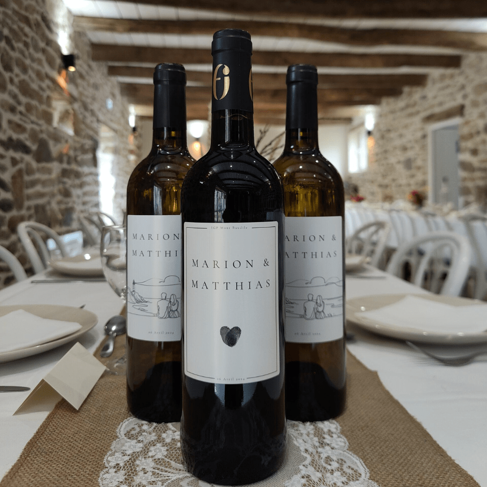 Le choix du vin de mariage est bien plus qu’un simple détail logistique. Il accompagne les moments forts de votre journée, marque les esprits de vos invités et reste souvent l’un des derniers souvenirs que l’on emporte chez soi. Grâce à notre formule de bouteilles de vin personnalisées pour mariage, vous transformez un vin de qualité en un véritable objet de souvenir, élégant et émotionnel.