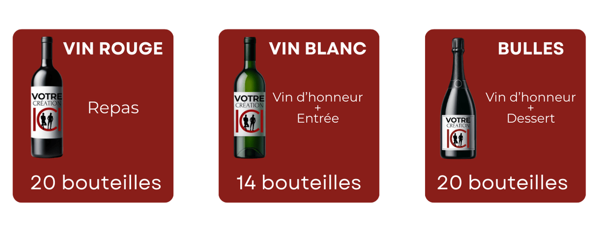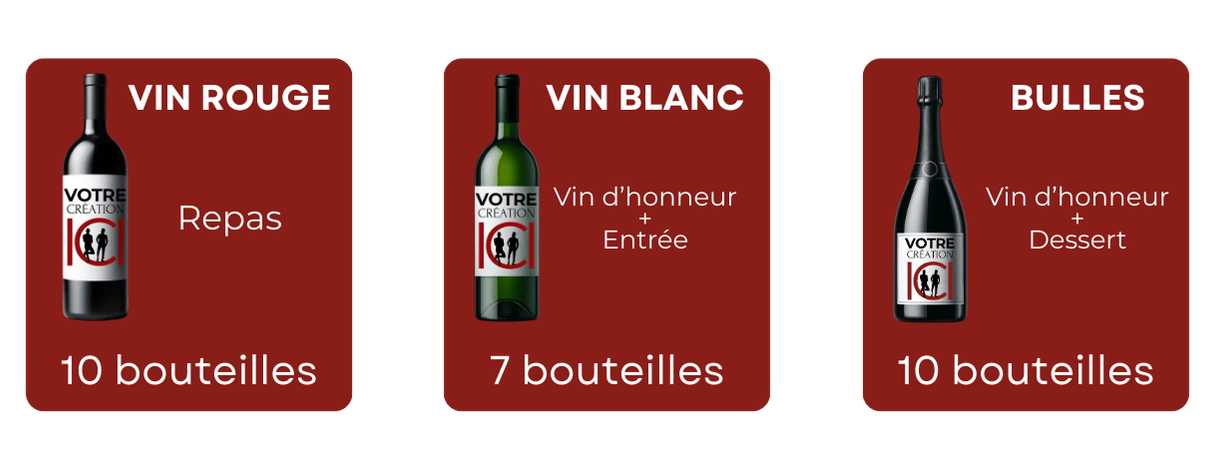 Que vous organisiez un mariage intimiste ou une grande réception, vous sélectionnez librement le nombre de bouteilles dont vous avez besoin. Vin d’honneur, repas, cadeaux invités ou bouteilles souvenirs : vous adaptez vos quantités à votre organisation réelle, sans gaspillage.