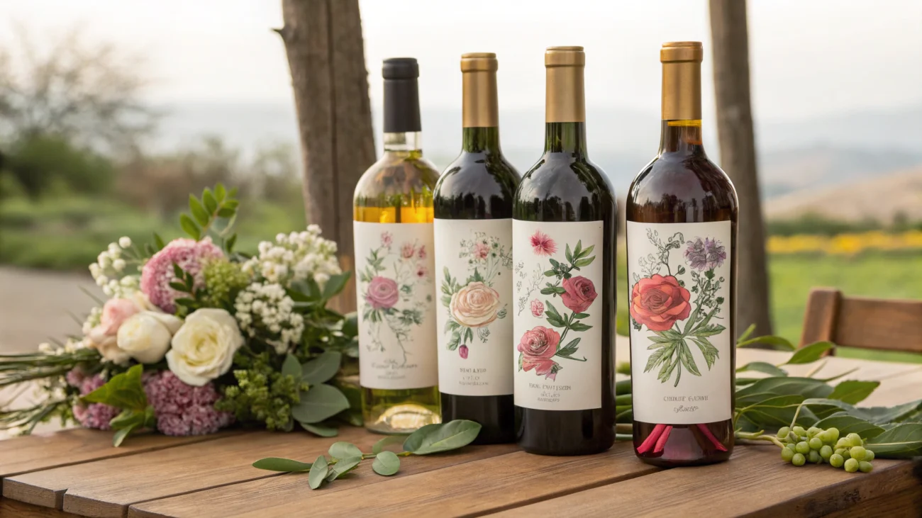 L’harmonie entre vin, bouteille personnalisée et mariage champêtre